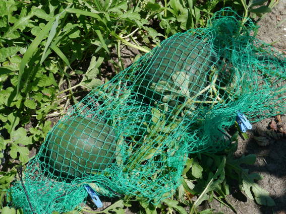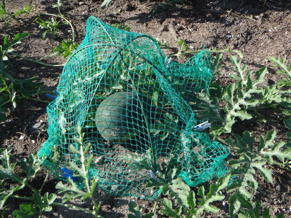 の黒スイカも鳥か獣にやられないようにネットをかけておきました