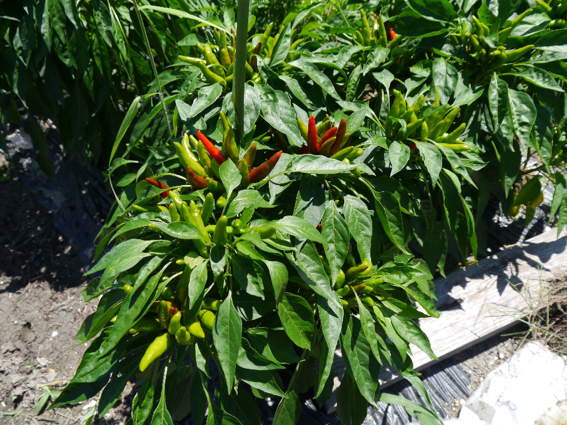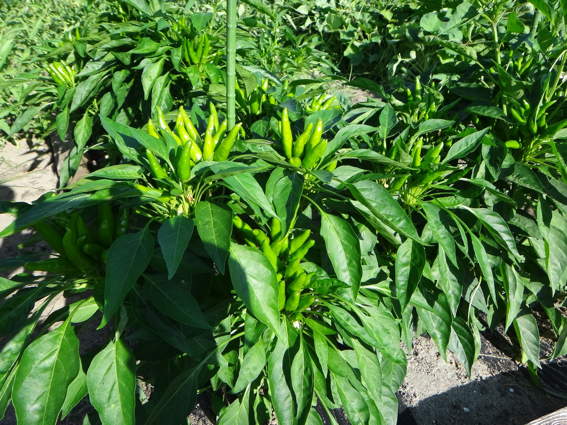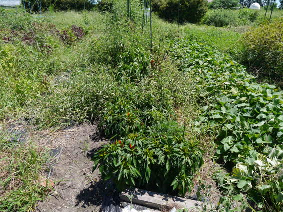 鷹の爪とピーマンはオッケー この列のトマトはそろそろ終わりですね