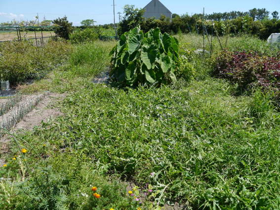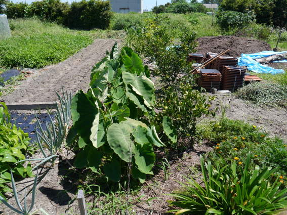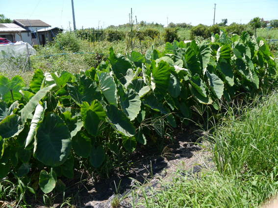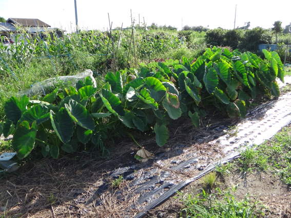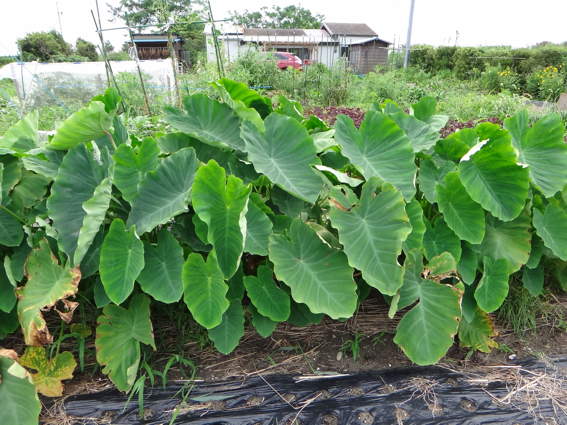 頼りは里芋さまですね これもコガネムシは気に入らないようです