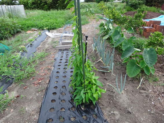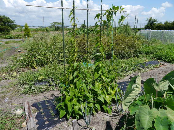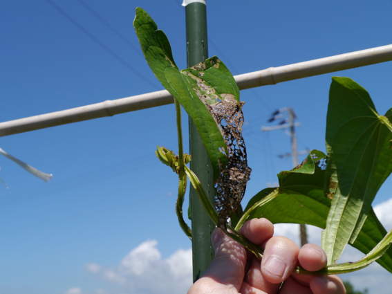 モロッコインゲンは葉っぱを全部コガネムシに食べられて全滅です