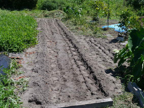 雑草を刈り取って何とかジャガイモ畑を作りました