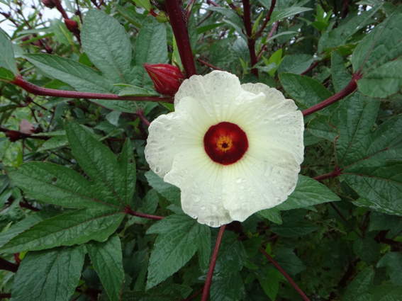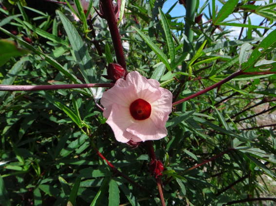 ちょっと遅咲きの別種のローゼルハイビスカスが咲きました