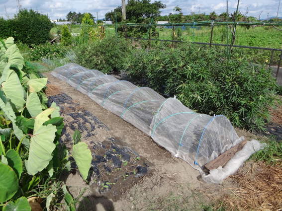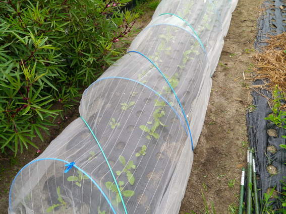 大根 ルッコラ 水菜 カツオ菜 防虫ネットで保護しました