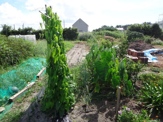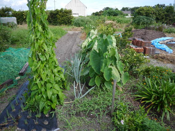 そろそろ疲れ切った里芋達 もう勝手に収穫してくれ っていう状態