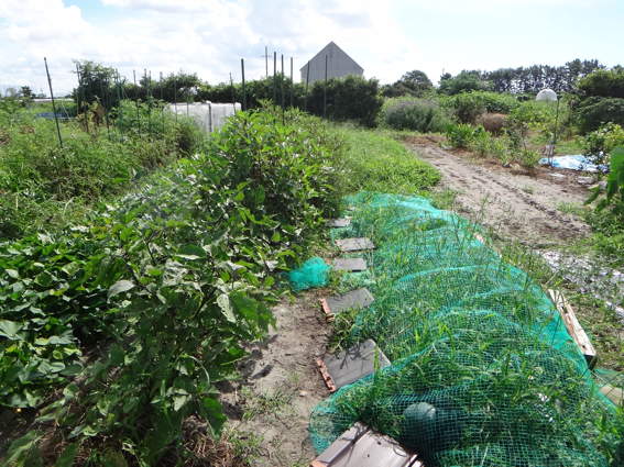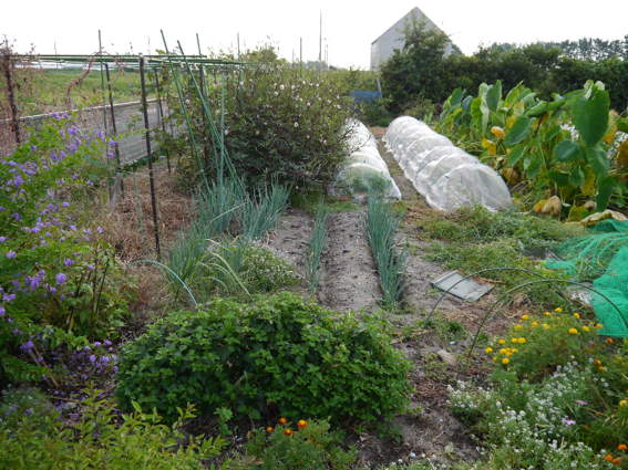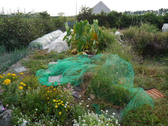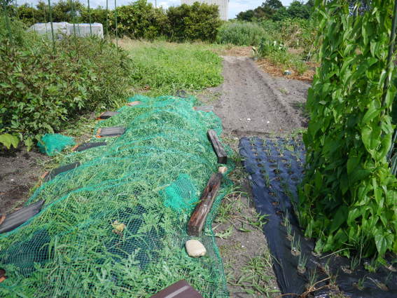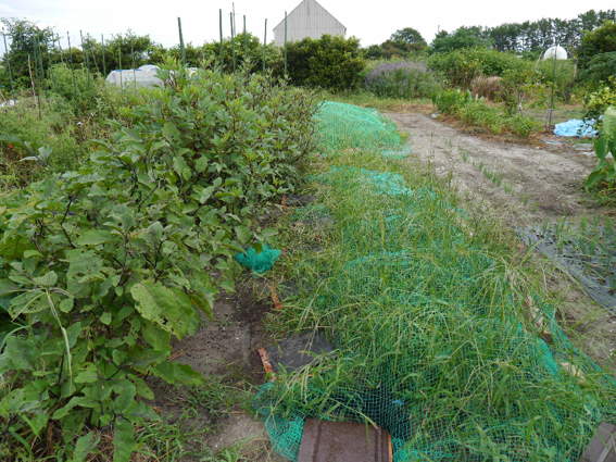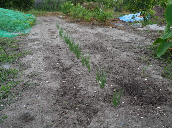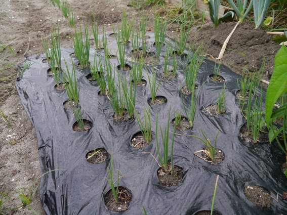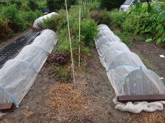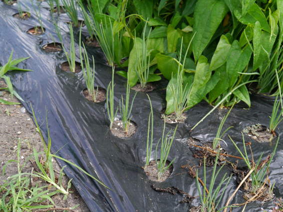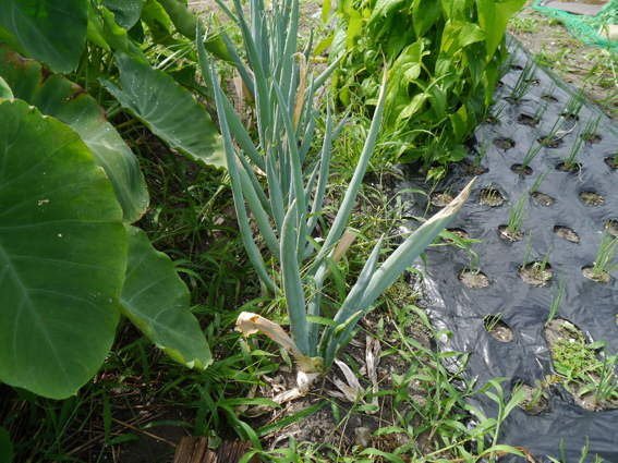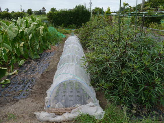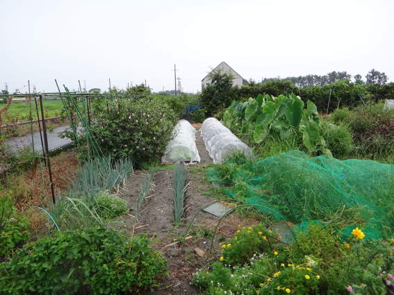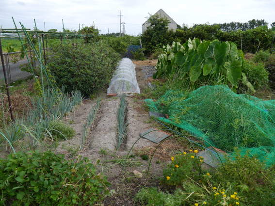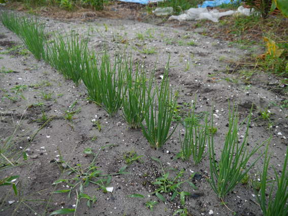 ワケギも大きくなっています 冬にはビニールトンネルで防寒します