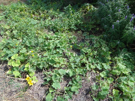 グルッと一回りします 山芋は葉っぱが枯れてから収穫ですここはまだスイカが1個残っています