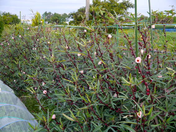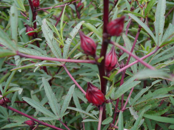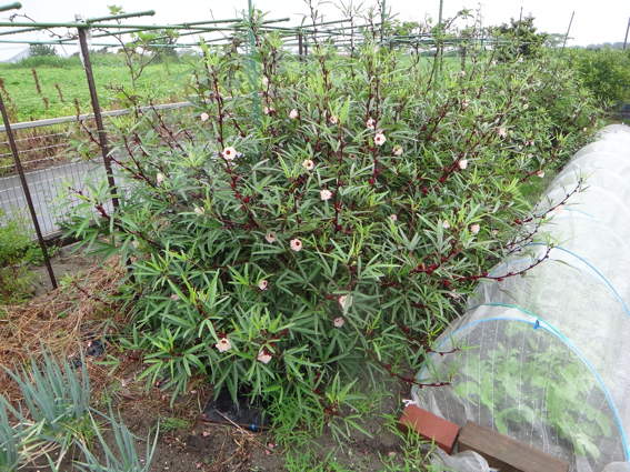 ローゼルハイビスカスの初収穫です お昼はローゼルティーを飲み