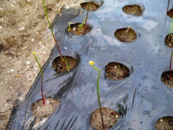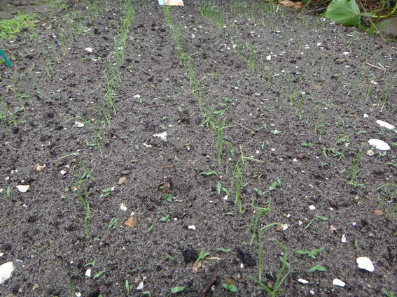秋ジャガを植えた間にワケギを植えておいたのが発芽しました