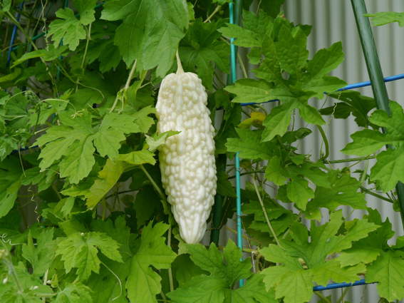 ゴーヤがやっと採れ始めました これは白ゴーヤ