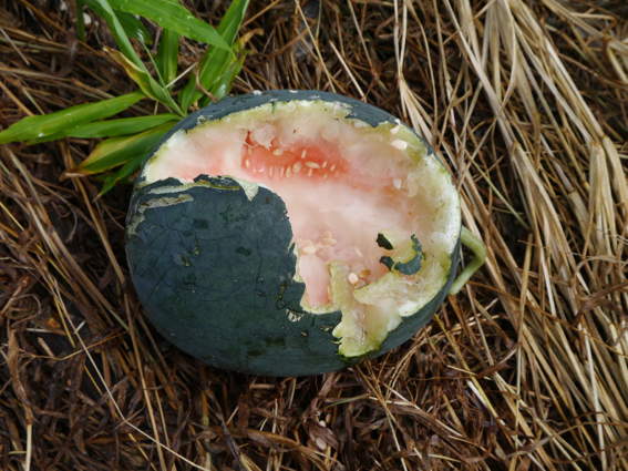 鋭い歯跡が残っています 先週スイカを2個ネットで包んだのですが