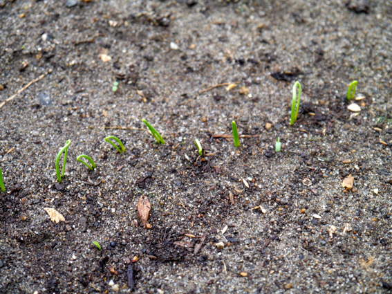 種が弾け飛んで芽が出てきました 種蒔く手間が省けました