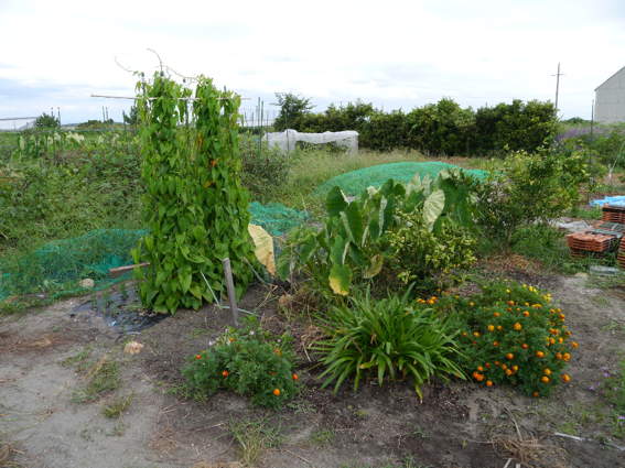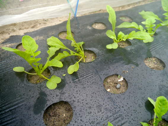 右の方には大根 ルッコラ カツオ菜 水菜が植えてあります