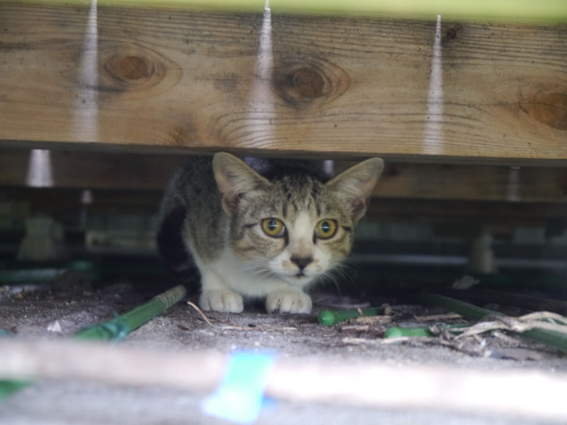 デッキの下に子猫が住み着いているのですよ 前の晩も