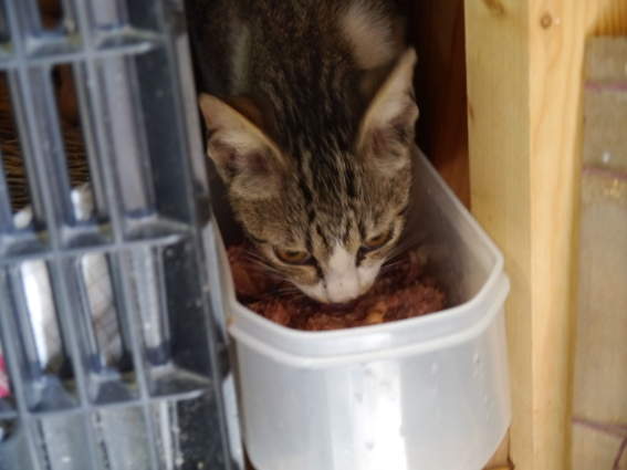 猫運搬用の容器にエサを入れておいたら簡単に捕まりました
