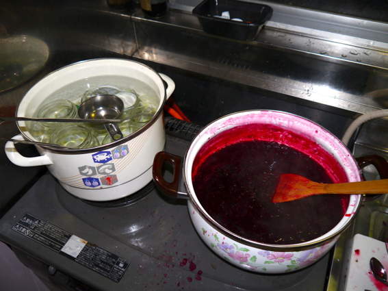 同時に容器を熱湯消毒しています このジャム結構いけるのですよ