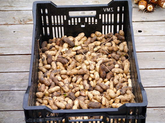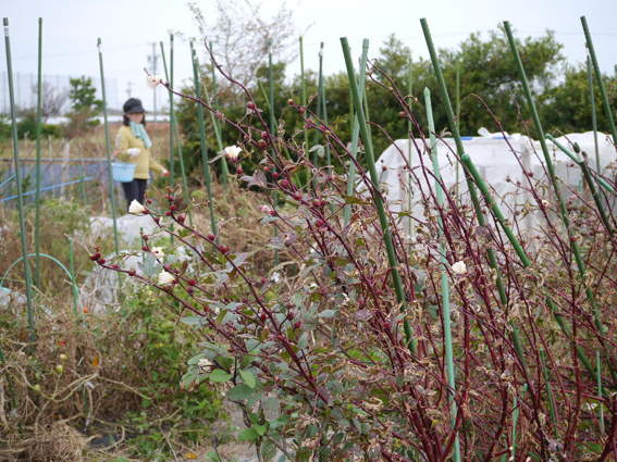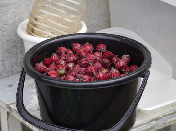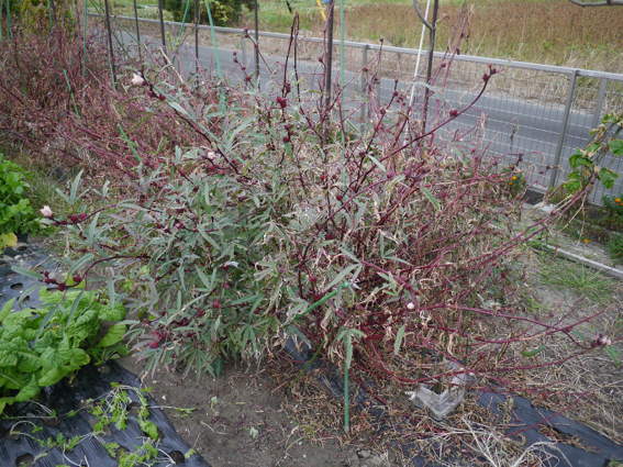 ローゼルハイビスカスの収穫やスナップエンドウの種蒔きなど