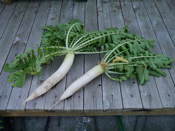 ダイコンの種蒔きをしたり雑草取りをしたりで
