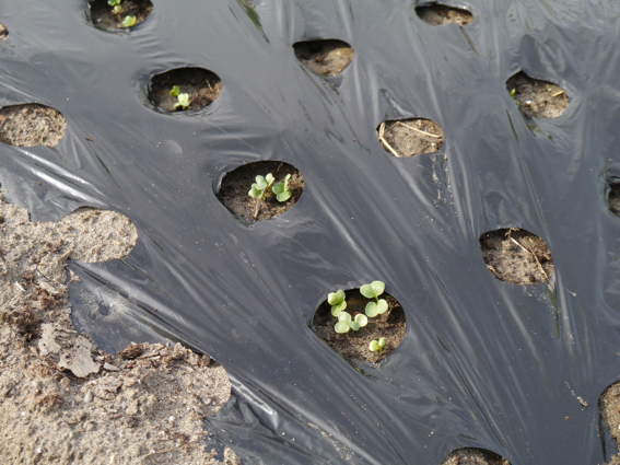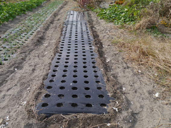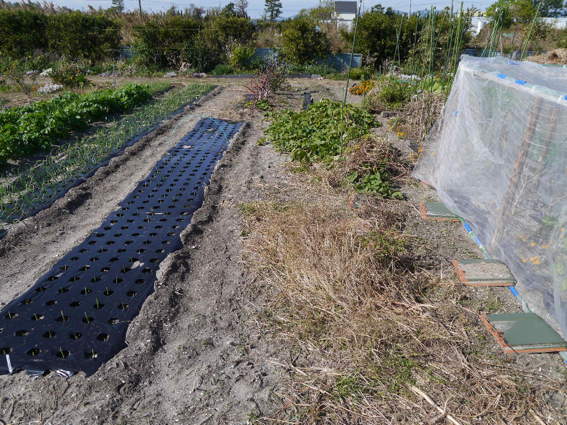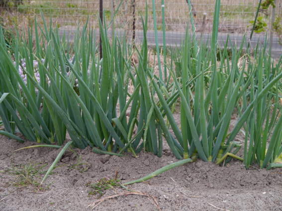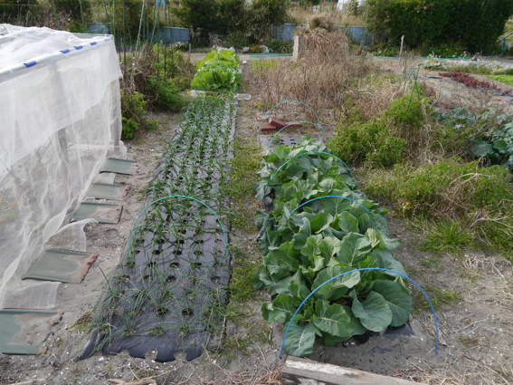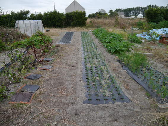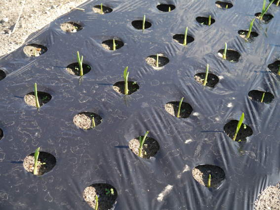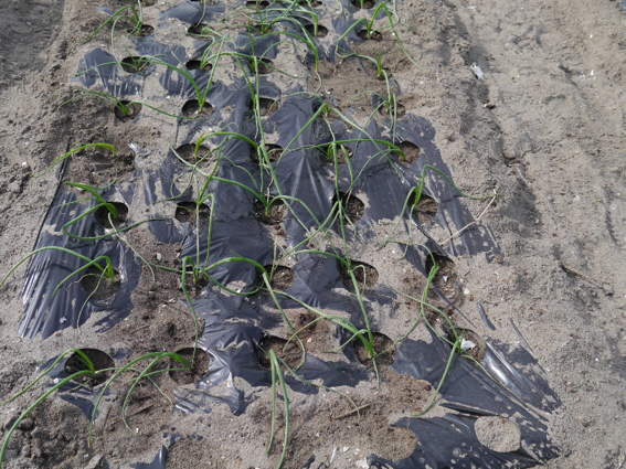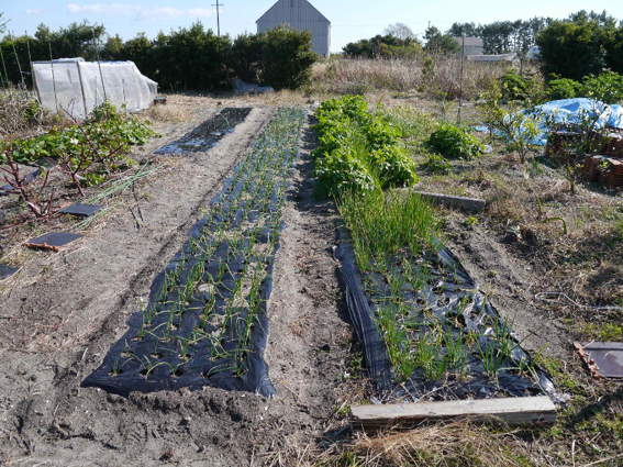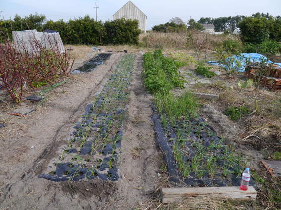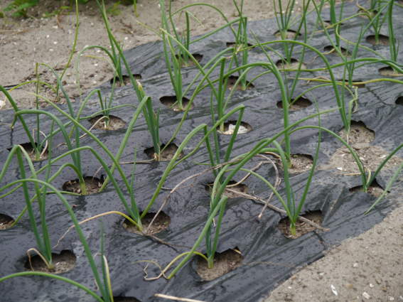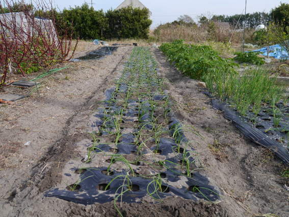先週400本あまり植えたタマネギの苗がピンと立ってきました