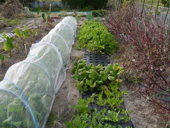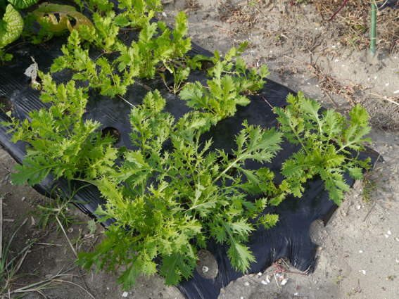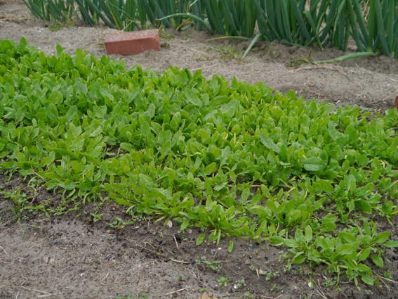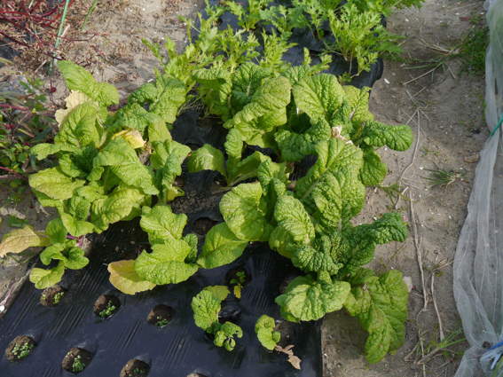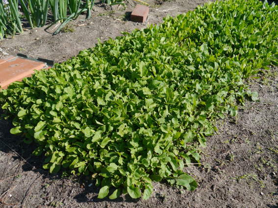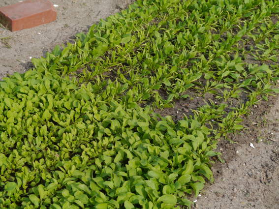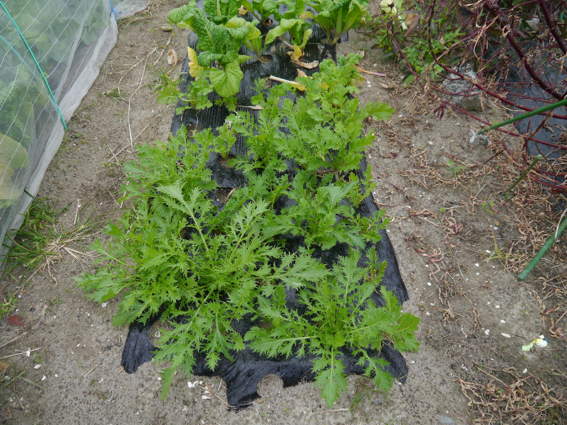 ルッコラとホウレンソウ 徐々に大きくなっています