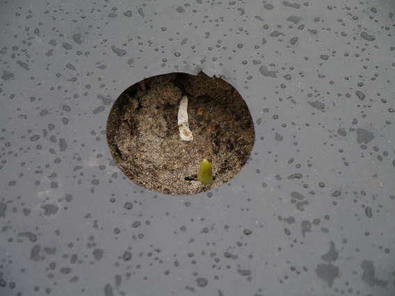ここに緑色のリーフレタスの種を蒔いたのですが少し発芽しています