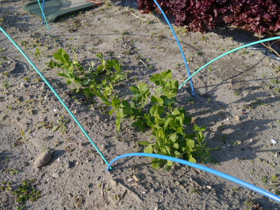 ホウレンソウとルッコラにビニールトンネルをかけ