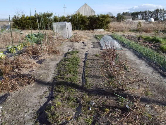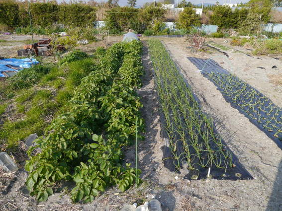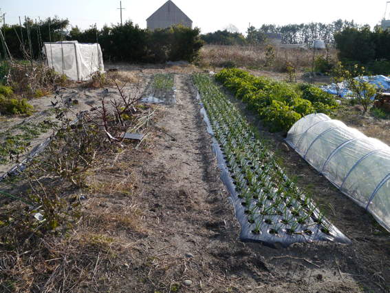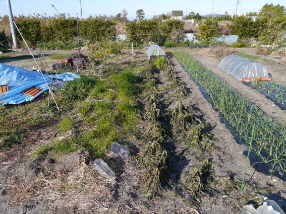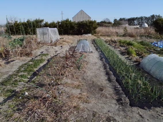 冬の畑風景です 手前はワケギ畑です ジャガイモは次回に収穫です