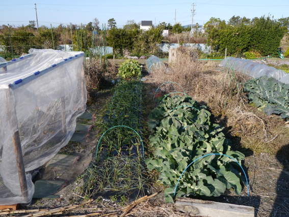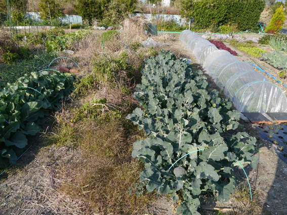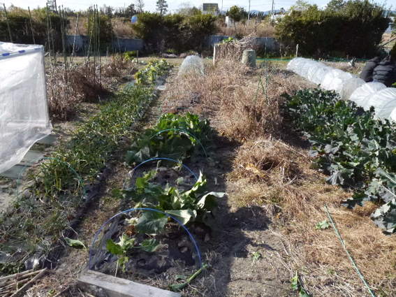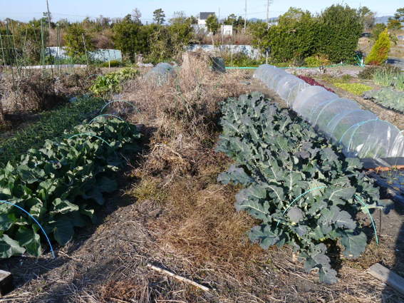 ブロッコリー畑です 右側は大根をトンネルで保護したところ