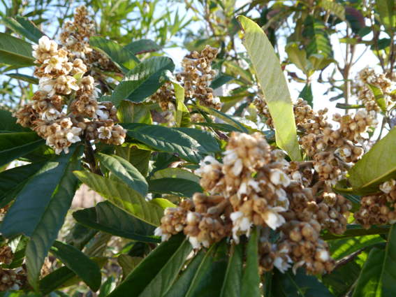 ビワの花はいっぺんに咲きませんね ジワジワと開花します