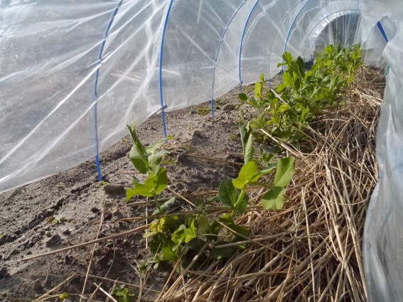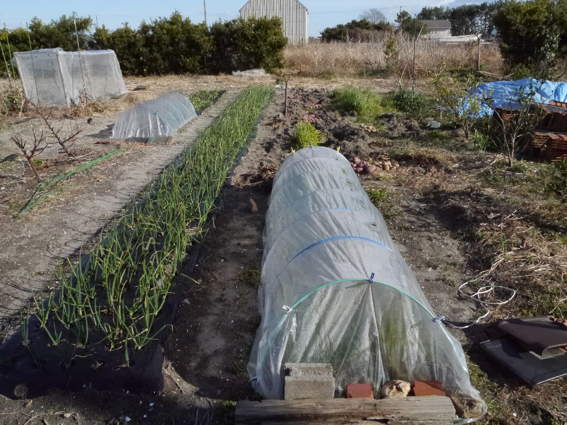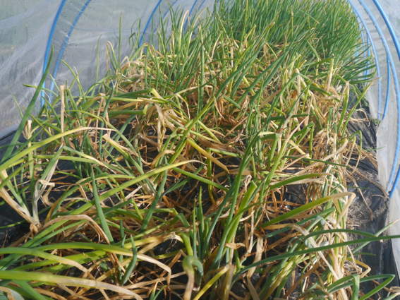 ワケギはちょっとくたばり気味です トンネルで元気になるかな?
