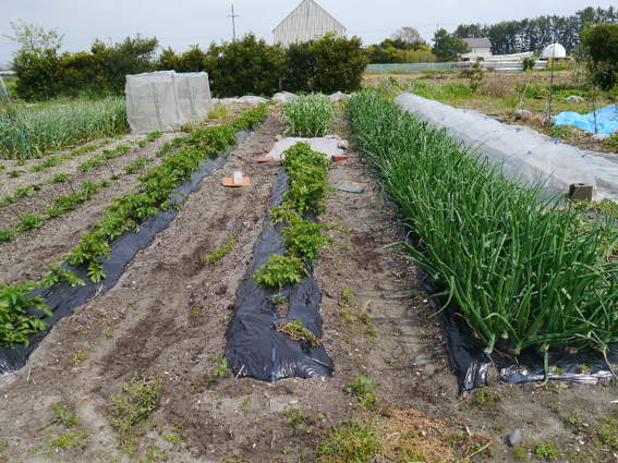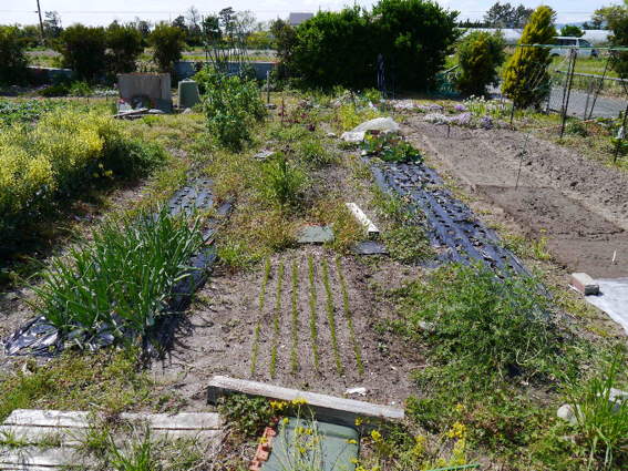左側の畝に里芋を植えようと思っています