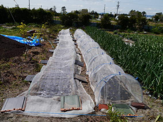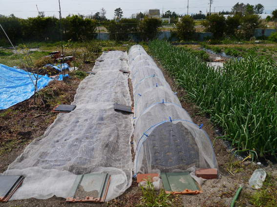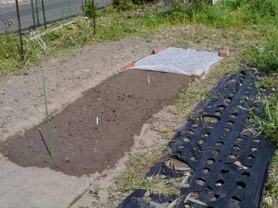 不織布がかけてあるところはミニ人参です
