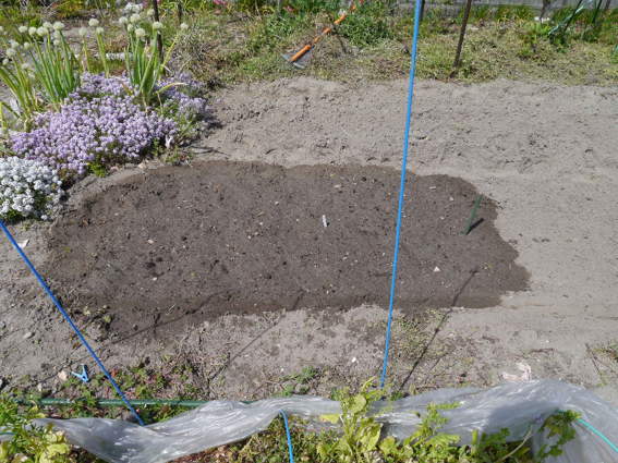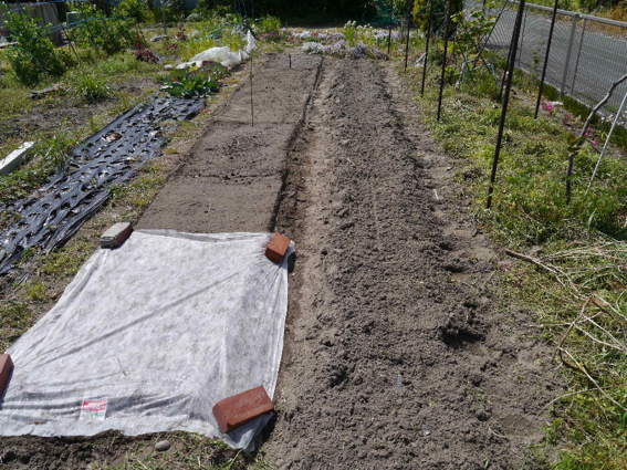 ここにゴボウの種を3列蒔きました