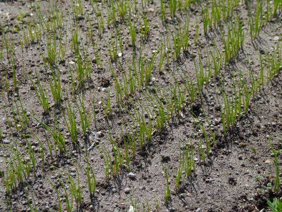 右のトウモロコシ畑は芽が出てきたのですが