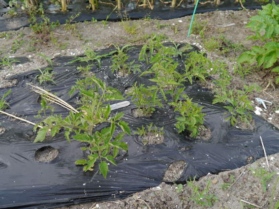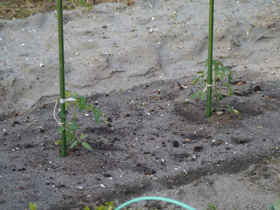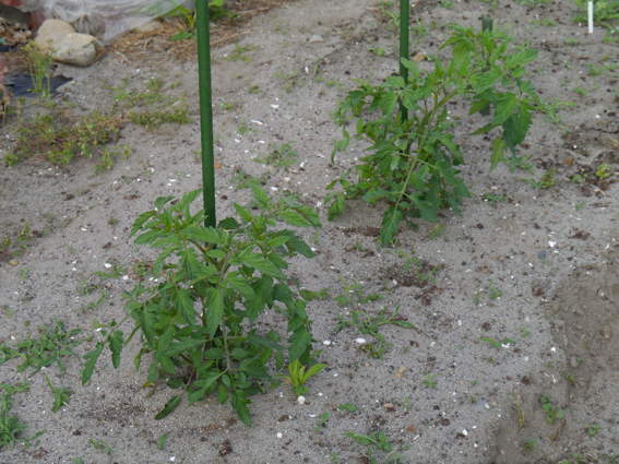 イタリア系トマトのこぼれ種から発芽したのをここで育てています