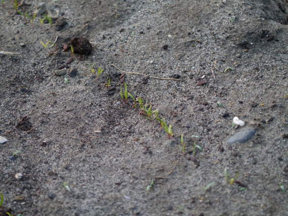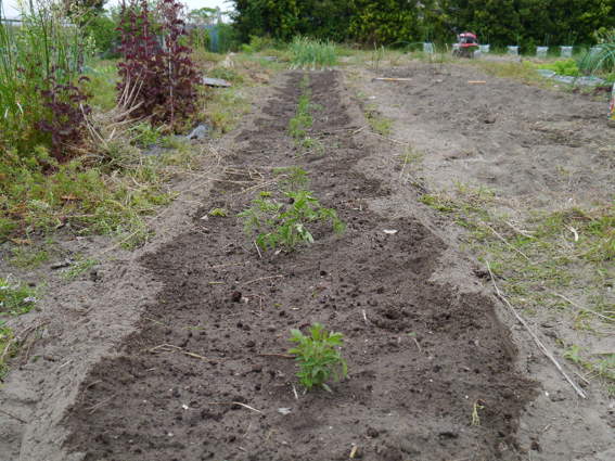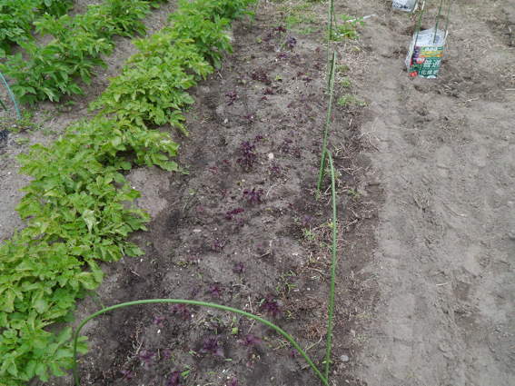 畑のあちこちで発芽した赤紫蘇をここに集めています