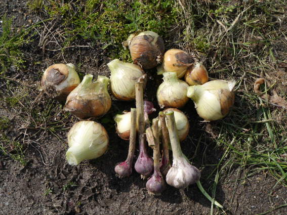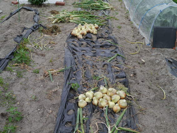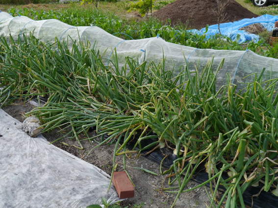倒れていたタマネギを抜きました 枯れそうなダメニンニクもね