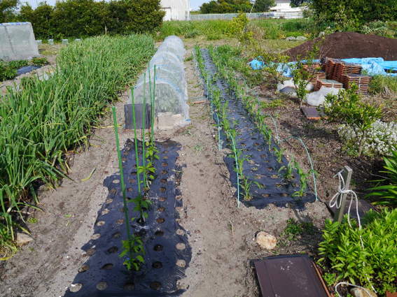 パプリカやピーマンそれに細長いペッパーも植えてあります