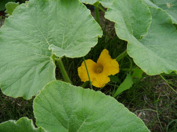 カボチャの雌花が咲いていましたの人工授粉をしました