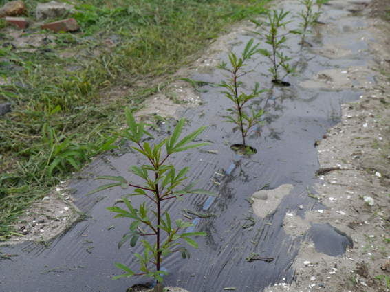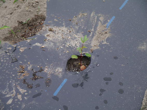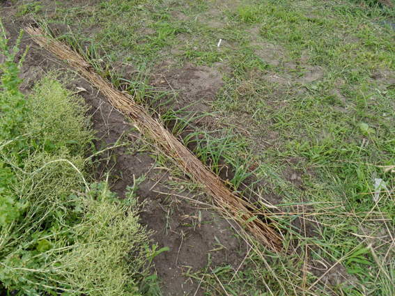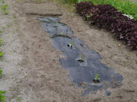 ここにはサツマイモ(紅あずま)の苗をを39本植えました