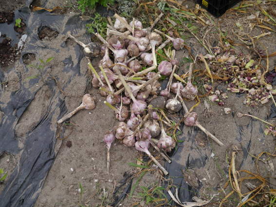 ニンニクも収穫しました 真弓にはジャガイモの収穫をやってもらいました