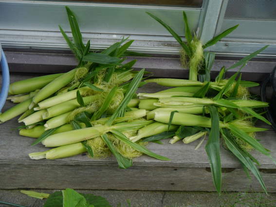 収穫したトウモロコシ 10本は冷凍しました