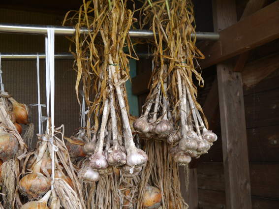 ゆり様が編むために干しているニンニクです