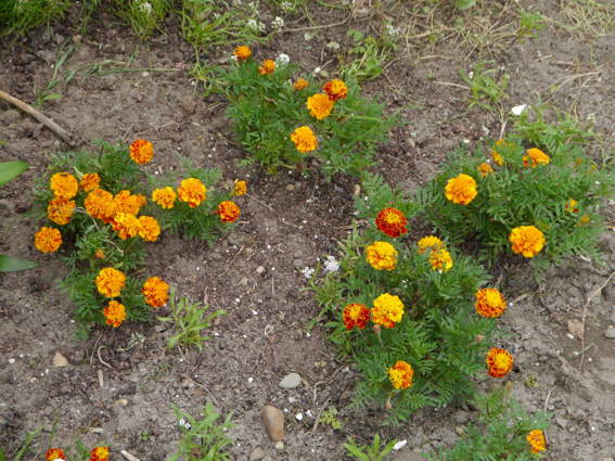 マリーゴールドも背が低いですが咲いています