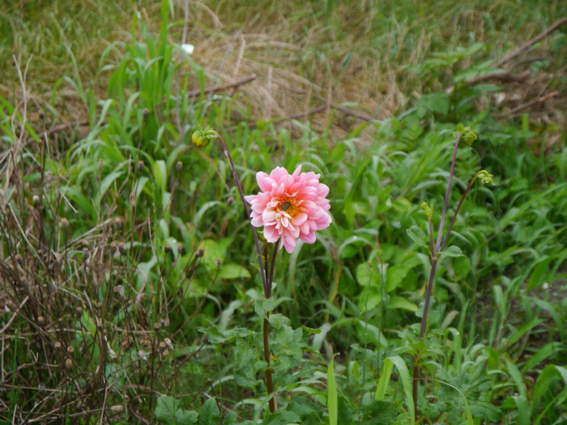 ダリアが一本だけ咲いています