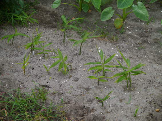 ショウガの芽が分かるくらいの大きさになりました