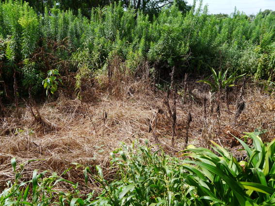 南隣の荒野から雑草が迫ってこないように除草剤を撒いた結果です