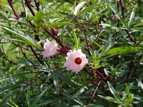 ローゼルハイビスカスの花が咲いています