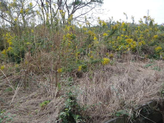 除草剤でスッキリさせた隣の原野ですがセイタカアワダチソウが