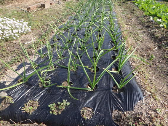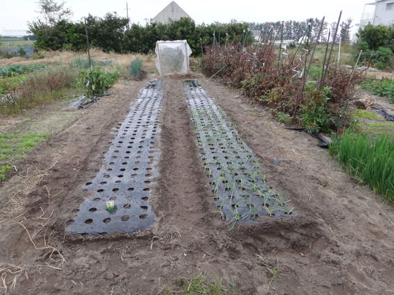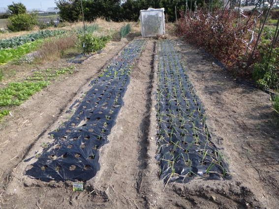 手前はタマネギを密植して小さいサイズにしようと