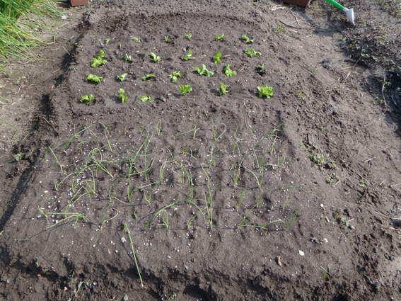 右はタマネギ 左はスナップエンドウとレタスを植えました